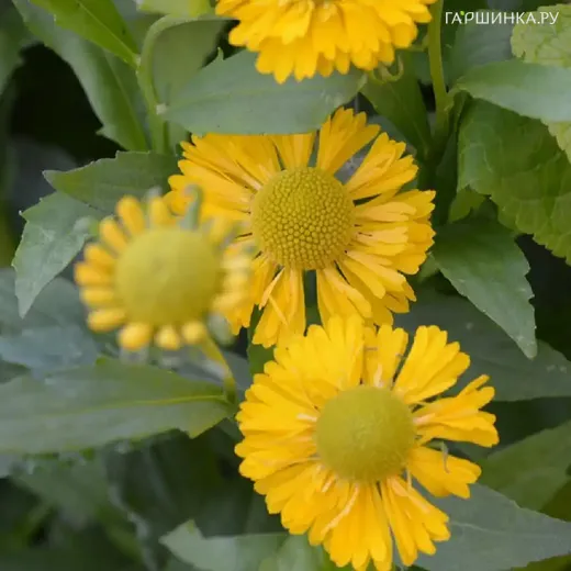 Гелениум Дабл Трабл – обильно и продолжительно цветущий осенний корневищный многолетник. Высота до 70 см. Первый махровый сорт гелениума. Цветки махровые, канареечно-желтые с зеленоватой серединкой, расположены на прочных цветоносах. Цветет обильно и продолжительно с июня по сентябрь.