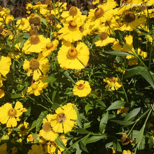 Гелениум Канария – обильно и продолжительно цветущий осенний корневищный многолетник. Высота до 120 см. Цветы крупные яркие лимонно-желтые, с коричневым налетом и желтым центром. Диаметр цветка 4-5 см. Нежный, тонкий медовый аромат Период цветения июнь-сентябрь.