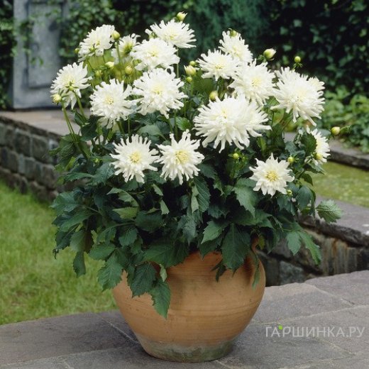 Георгина Аспен бордюрная — клубневое бордюрное растение высотой 40 см. Декоративные, белоснежные с кремовым центром цветки достигают 10 см в диаметре и служат замечательным украшением участка. В срезке цветоносы георгины устойчивы, великолепно смотрятся в комбинированном букете. Широко применяется для бордюрной высадки, на клумбах и миксбордерах. Отлично подходит для выращивания в квартире в горшках.
