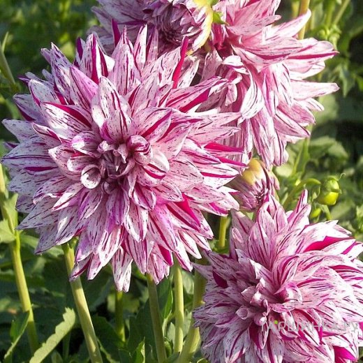 Георгина Блэкберри Рипл кактусовидная - крупные нежно-розовые цветки с лиловым напылением. Сорт образует куст высотой 100-110 см. Диаметр цветка 12-18 см. Цветок нежно-розовый с пурпурными штрихами на лепестках.