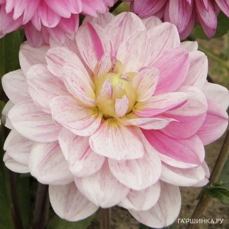 Георгина Бонеста декоративная Крупные нежно-розовые бутоны с сиреневыми штрихами и крапом, по форме напоминают королевские лотосы. Георгина порадует Вас долгим обильным цветением с июня по октябрь. Диаметр цветка при роспуске 10-15 см. Высота растения: 100 см.
