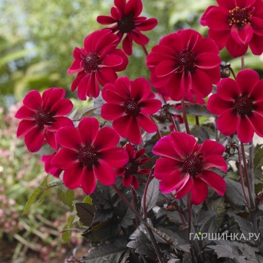 Георгина Дракула бордюрная - Завораживающая темно-пурпурно-красная георгина со светло-розовыми краями лепестков. Дракула входит в серию георгин Темный Ангел. Их драматическая темная листва чудесно оттеняет цветы. Эта серия идеальна, если пространство ограничено, так как их высота составляет всего 30-35 см. Диаметр цветка - 3 см.