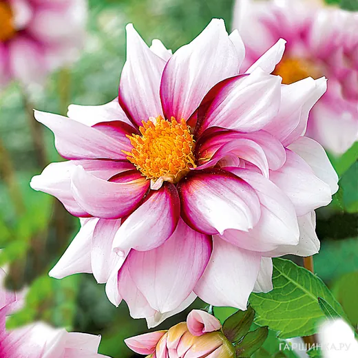 Георгина Эдж оф Джой бордюрная – многолетнее растение высотой 50-60 см. Георгины являются одними из наиболее распространенных и любимых многими садоводами многолетним растением. Цветок анемоновидный Георгины Эдж оф Джой декоративная с лепестками белого цвета обрамленными холодной темно-розовой каймой. Диаметр цветка 10-15 см. Листья – перистые. Цветение продолжительное в период июль-сентябрь. Используют в групповых посадках, для оформления многоярусных ландшафтных композиций, для срезки.