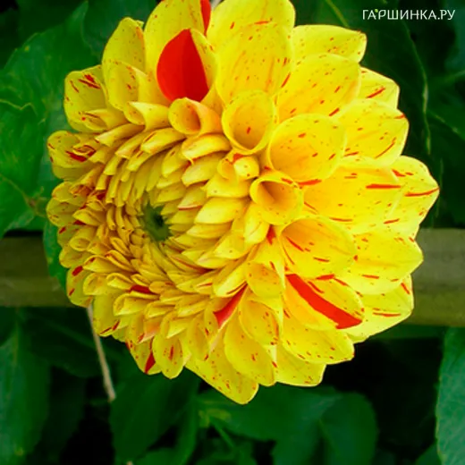 Георгина Фанни Фэйс шаровидная - сорт с ярко желтыми с красными штрихами соцветиями. Аромат цветка притягивает нежными сладкими нотками. Высота георгины 80-100 см. Цветок до 8-10 см в диаметре. Цветет продолжительное время, с июня до октября.