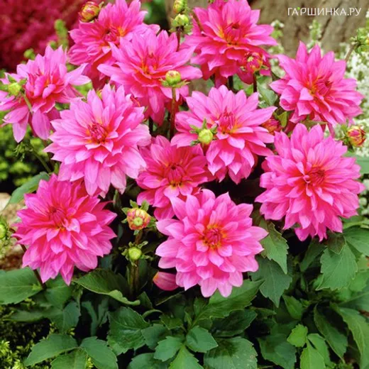 Цветки георгины Геллери Ренуар привлекают внимание своими крупными, махровыми соцветиями, которые могут достигать 10-15 см в диаметре. Окраска лепестков варьируется от нежных розовых до насыщенных малиновых оттенков, создавая эффектный визуальный акцент в любом цветочном ансамбле. Эти георгины не обладают ярко выраженным ароматом, что делает их идеальными для людей, чувствительных к запахам.