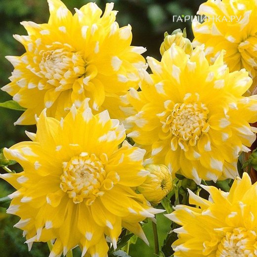 Георгина Гранд При (МАКСИ) декоративная Серия 'Макси'. Лимонно-желтый цветок с белыми кончиками лепестков. Высота - 90 см, диаметр цветка - 22 см.