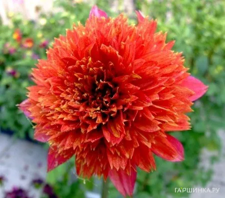 Георгина Джайв анемоновидная Георгина с цветком необычной формы - плотно набитая махровая серединка в окружении ряда простых лепестков. Высота – 40-50 см, диаметр цветка – 5-9 см.