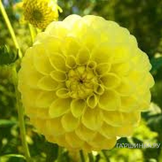 Георгина Катя шаровидная - сорт с лимонно-желтыми соцветиями. Высота георгины 90 см. Цветок 7-10 см в диаметре. Цветет продолжительное время с июня до октября.