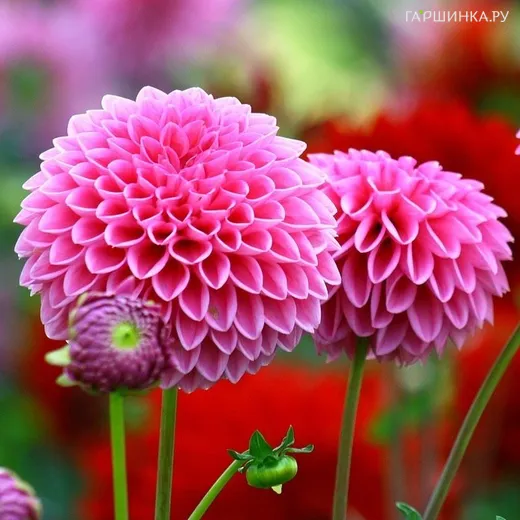Цветение Георгины Сандра шаровидной начинается в июле и продолжается до первых осенних заморозков, радуя глаз обильностью и красотой. Сами цветы окрашены в насыщенный розовый цвет с переливами, что делает их визуально очень привлекательными и позволяет использовать в различных ландшафтных композициях.