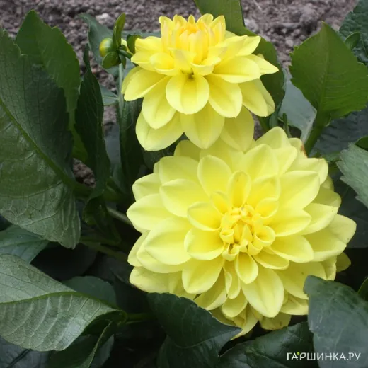 Георгина Сиса бордюрная - подходит для выращивания в горшках, на балконах, возможен вариант бордюрного выращивания. Высота куста до 55 см. Листья темно-зеленого цвета. Цветы полумахровые в форме шара, диаметром 10 см. Цвет лепестков ярко-желтый. Цветение с июля до сентября. Аромат отсутствует.