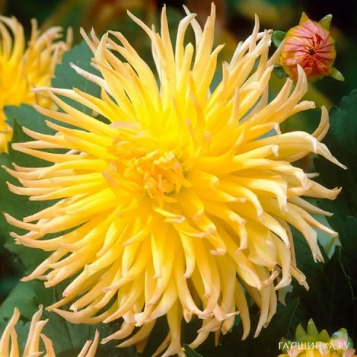 Георгина Стар Спектакль бахромчатая цветет в период с июля по октябрь, образуя причудливые цветы ярко-желтого цвета, переходящий в оранжево-желтый цвет на "лохматых" кончиках нежных лепестков. Диаметр цветка при роспуске 15-20 см. Цветение георгины Star Spectacle всегда обильное, продолжительное. Высота растения: 80-100 см.