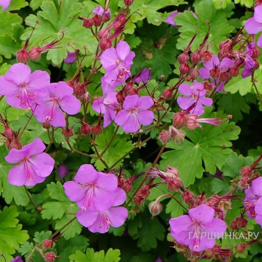 Герань Кармина кембриджская – эффектный почвопокровный неприхотливый многолетник. Высота до 25 см. В начале лета цветет цветками до 2,5 см в диаметре. Цветки ярко-розовые, цветет в мае- июне.