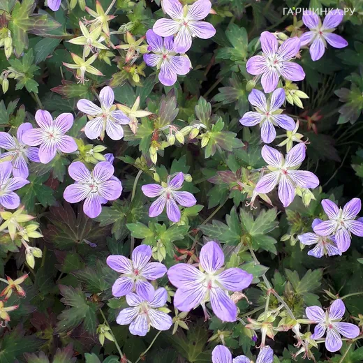 Герань Фэй Анна – эффектный почвопокровный неприхотливый многолетник. Высота 30-40 см. Выдающийся сорт с исключительно красивой весенней и осенней листвой. Цветки диаметром 2 - 2.5 см, светло-розовые с белым центром, при отцветании голубовато - сиреневые. Стебли бордовые. Листья необычные летом тёмно-зелёные, живописные, меняют окраску весь сезон. Цветение с июня по август.