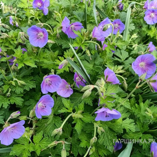 Герань садовая Джонсонс Блу – эффектный почвопокровный неприхотливый многолетник. Высота 50 - 60 см. Цветки диаметром 4 - 5 см сиреневатые, почти синие со светлой точкой в центре. Период цветения июнь- июль. Если срезать увядшие соцветия, в начале осени может зацвести повторно.