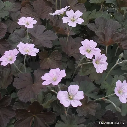 Герань садовая Даски Круг – эффектный почвопокровный неприхотливый многолетник. Высота всего 15 см. Цветки бледно - лавандовые с более тёмными прожилками. Цветение обильное и продолжительное(июнь - август). Лист пурпурный с бронзовым оттенком.