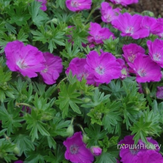 Герань садовая Макс Фрай – эффектный почвопокровный неприхотливый многолетник. Высота 30 см. Листья не опадают на зиму, светло- зеленого цвета, осенью часть листьев приобретает ярко-красную окраску. Цветки многочисленные, пурпурно- красные, обильно осыпают весь куст. Цветение очень обильное и продолжительное, с середины июня до августа.