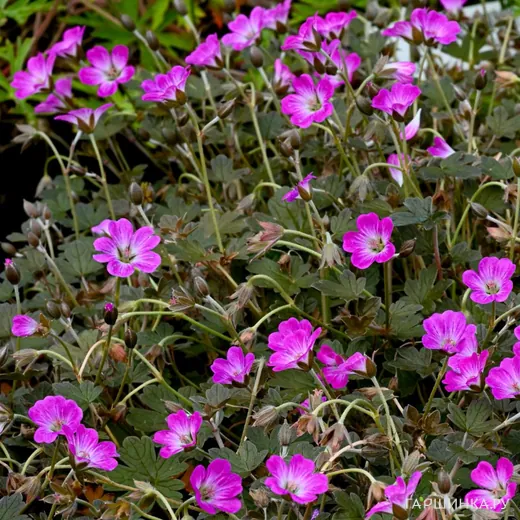 Цветки тёмно-розовые с белым центром и красными прожилками. Диаметр до 4 см. Высота взрослого растения до 40 см.