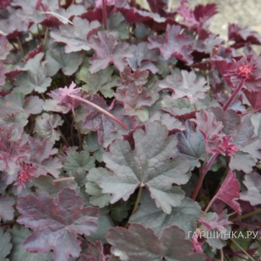 Гейхера Хэппи Девил - это удивительное декоративное растение, которое привлекает внимание своими яркими и необычными листьями. Это многолетнее травянистое растение относится к семейству камнеломковых и является прекрасным выбором для создания живописных композиций в саду. Гейхера Хэппи Девил отличается компактным ростом, достигая высоты около 30-40 см, что делает её идеальной для бордюров и миксбордеров. Растение формирует плотные розетки из листьев, которые могут иметь разнообразную окраску: от насыщенного зелёного до глубокого пурпурного с контрастными прожилками.