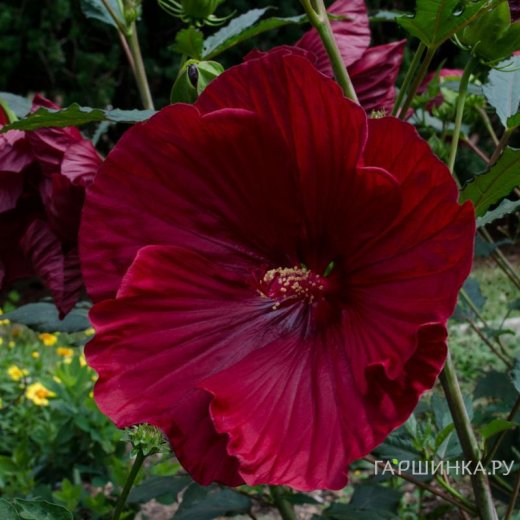 Гибискус Cranberry Crush - быстрорастущий, декоративный, неприхотливый кустарник. Куст прямостоячий, полураскидистый, 1,2 м. Цветок округлый, немахровый, темно-бурой окраски, крупный 30 см, край гофрированный, ощущение махровости и многослойности. Бутоны могут формируются по всей верхушечной части . Лепестки используются для приготовления царского напитка - каркаде.