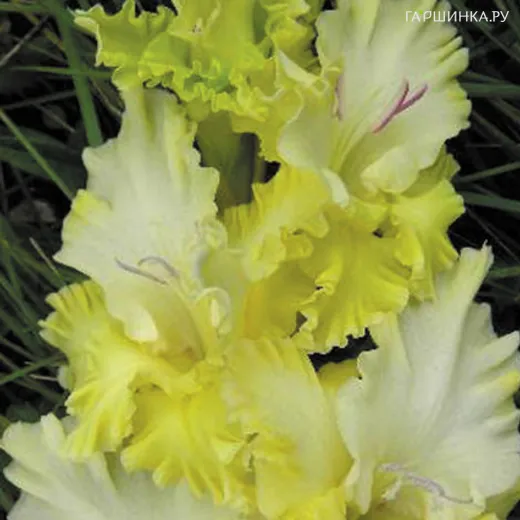 Гладиолус Ажурная вязь 2 шт - многолетнее клубнелуковичное растение семейства Ирисовых. Высота 165 см. Желтый с усилением окраски к краям, мелкая зубчатая гофрировка.