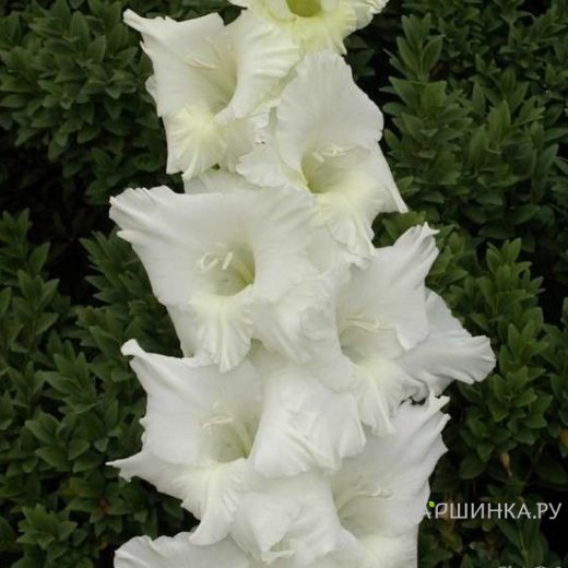 Гладиолус Балет на льду - многолетнее клубнелуковичное растение семейства Ирисовых. Высота 150см.Бутон 14см. Лепестки зеленовато-белые гофрированы мелкими защипами.