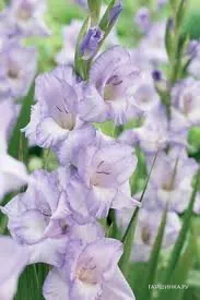 Гладиолус Баллино 5шт. - многолетнее клубнелуковичное растение семейства Ирисовых. Высота 100см. Цветы бело-сиреневые размером 15см. Цветение с июля по сентябрь.