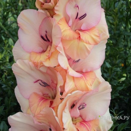 Гладиолус Бальзам любви - многолетнее клубнелуковичное растение семейства Ирисовых. Высота 140-145 см. Светло-малиновые с палевыми оттенками, в горлышке малиновые стрелочки. Небольшая гофрировка отлично сочетается с широко открытым цветком округлой формой.