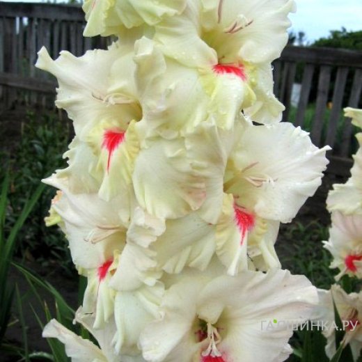 Гладиолус Беле 2 шт - многолетнее клубнелуковичное растение семейства Ирисовых. Высота 145 см. Кремово-розовые верхние лепестки, нижние – лимонные с розовым пятном.