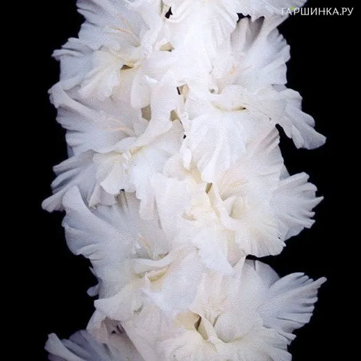 Гладиолус Белый дом 2шт - многолетнее клубнелуковичное растение семейства Ирисовых. Высота 165-170 см. Бутон 15 см. Основной тон - чистый белый. В горле и на слабо окрашенных бутонах кремовато-белый. Сильно гофрирован складками и глубокими защипами. Ткань плотная, прочная.
