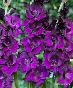 Гладиолус Блэк Вельвет 5шт. - многолетнее клубнелуковичное растение семейства Ирисовых. Высота растения 80-110см. Цветы темно-фиолетовые, бархатные, собраны в однорядные, колосовидные соцветия. Цветение с июля по сентябрь.