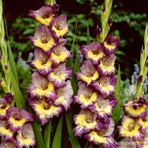 Гладиолус Динамит 5 шт - многолетнее клубнелуковичное растение семейства Ирисовых. Высота 120 см. Размер цветка до 15 см. Цветок гладиолуса с молочно-желтой серединкой и красновато - фиолетовым гофрированным краем. Период цветения: август-сентябрь.