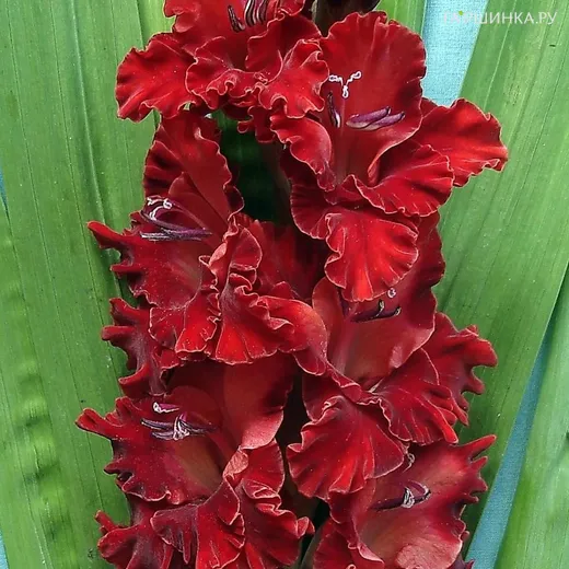 Гладиолус Файер Френзи - Оригинатор Мэдисон. Крупноцветковый, высокорослый, гофрированный сорт. Цветонос плотный, прямостоячий, упругий, 1,5 м. Продолжительность роста от посадки до цветения 75 дней, окраска цветка огненно-красная, светлое пятно на внутреннем верхнем лепестке в центре. Зона зимостойкости 10.