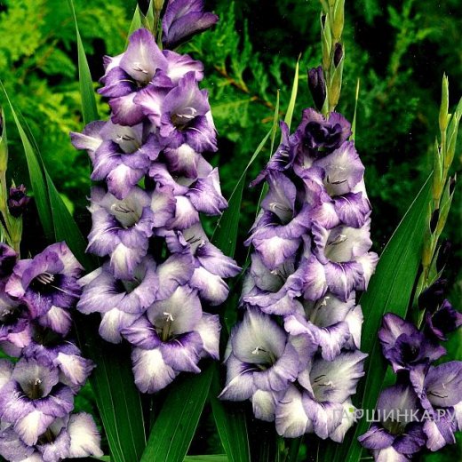 Гладиолус крупноцветковый Хидден Треже 7шт. - многолетнее клубнелуковичное растение семейства Ирисовых. Высота 120 см. Размер цветка 15см. Цветы белые в центре и фиолетовые по краям лепестков. Цветение с июля по сентябрь.