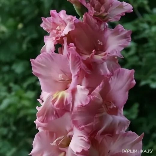 Гладиолус Хорошее Настроение - многолетнее клубнелуковичное растение семейства Ирисовых. Высота 150см. Светло-малиновый с усилением окраски к краям лепестков с желтым пятнышком на нижнем лепестке.