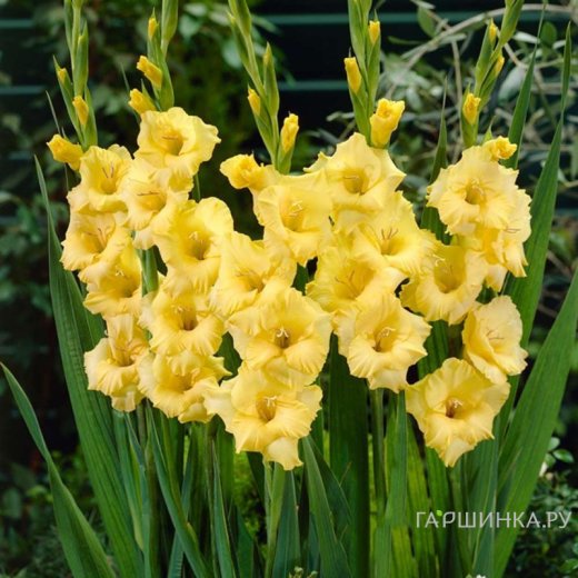 Гладиолус Джексонвилль Голд 5 шт. - многолетнее клубнелуковичное растение семейства Ирисовых. Высота растения: 90-100 см. Размер цветка: 10-15 см. Цветок гладиолуса насыщенно-желтый с рельефными гранями и гофрировкой по краю лепестков. Период цветения: август-сентябрь.
