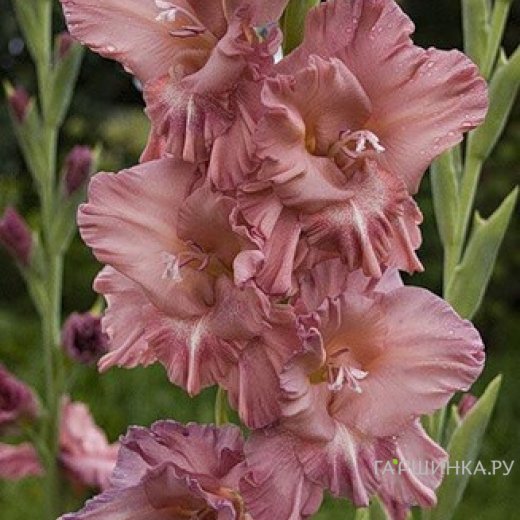 Гладиолус Шоколадница - многолетнее клубнелуковичное растение семейства Ирисовых. Высота 160 см. Цветок 12,5-13,5 см. Сильно гофрированный. Мощный гладиолус с цветами очень чистой окраски какао с розоватым оттенком, на нижнем лепестке в оранжево-красном ореоле светлое пятно с коричневым напылением.
