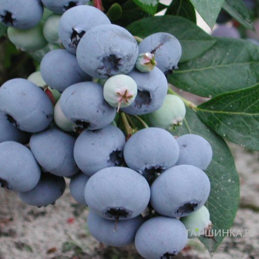 Голубика Блюголд - Относительно низкий но мощный куст высотой 120–150 см. Ягода созревает с середины июля. Урожай очень хороший, регулярный 4,5–7,0 кг с куста. Плоды средней величины, светло-голубого цвета, плотные, с маленьким рубчиком и хорошим вкусом. Цвет ягод очень красивый и привлекает взгляд. Ягоды плотные, среднего и больше среднего размера, вкус сладкий с кислинкой, хорошо транспортируются. Пригодны для потребления как в свежем виде так и в кулинарии. Хорошо сохраняют свои вкусовые качества при заморозке. Куст среднерослый, не прихотлив, выращивается довольно легко.