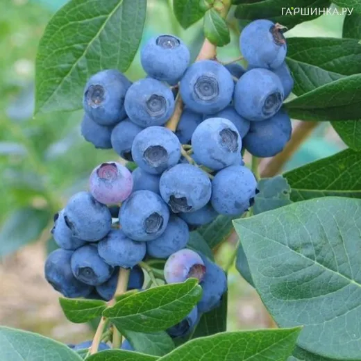 Голубика Харди Блю - это высокоурожайный сорт голубики, известный своей неприхотливостью и устойчивостью к холодам. Это многолетний кустарник, который принадлежит к семейству Вересковые. Харди Блю отличается прямостоячим типом роста и может достигать высоты до 1,5 метров. Кусты компактные, с густой кроной, что делает их удобными для выращивания на садовых участках. Побеги гладкие, без шипов и колючек, что облегчает уход и сбор урожая.