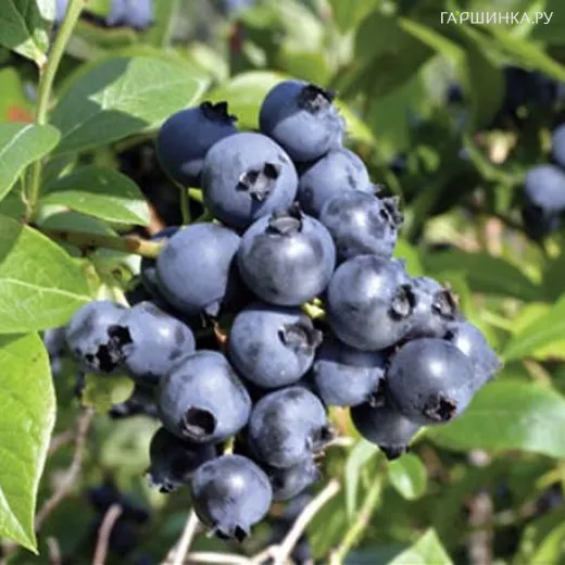 Голубика Норт Блю - низкорослый, узколистный и морозостойкий сорт. Кустарник мощный, образует раскидистую крону диаметром 80-90 см и высотой до 80 см. Корневая система поверхностная и разветвленная. Интенсивность роста средняя, за один год появляется 5 побегов. Голубика цветет в июне. К концу июля-началу августа созревают плоды. Ягоды крупные, темно- синего оттенка, мякоть довольно плотная, сладкая, но есть немного лёгкой кислинки. Средний уровень урожайности. Для хорошего урожая абсолютно нет необходимости в посадке других сортов голубики, так как сорт самоплодный.