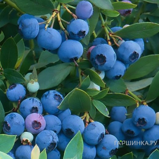 Голубика высокорослая Саншайн Блю - в высоту достигает 120 сантиметров. Сорт: самоплодный (не требует наличия опылителей). Плоды: светло-голубые с восковым налетом, массой до 1,8 гр. Вкус: сладкий с кислинкой; дегустационная оценка - 4.2. Период созревания: первый урожай можно снять в середине июля. Урожайность с куста: средняя, достигает 4,5 кг.