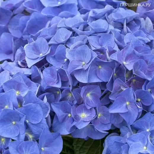 Гортензия Джип Блю крупнолистная (макрофила) - куст компактный, среднерослый, достигает высоты 100-130 см и имеет пышную крону. Листья яйцевидные, с острыми кончиками и пильчатыми краями. Окраска листьев зеленая, поверхность глянцевая. Форма соцветия шаровидная, диаметром оно до 20-25 см. Соцветие состоит из мелких цветков ярко-синей с васильковым отливом или васильково-голубой окраски. Основная окраска цветков синяя, но способность сорта изменять расцветку в зависимости от типа почвы позволяет получить различные оттенки. Цветки имеют нежный аромат. Цветение длится с июля до сентября. Предпочитает освещенное местоположение без прямых лучей или полутень, а также хорошо дренированную кислую почву. При необходимости можно добавлять торф для улучшения качества почвы. Относится к зоне USDA 6 (от -23° до -18°).
