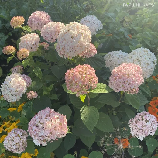 Гортензия Кандибелле Маршмеллоу древовидная - древовидная. Соцветия крупные, 35 см, шаровидные, плотные. Окраска соцветия светло-розовая, постепенно становится белой. Высота 80 см, ширина 90 . Цветение обильное и очень продолжительное. Первое цветение в год посадки.