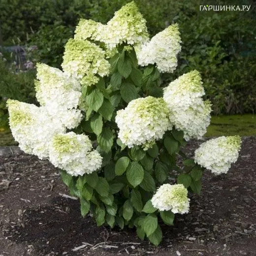 Гортензия Мэджикал Мунлайт (Волшебный лунный свет) метельчатая - В начале цветения имеет оттенок зеленого лайма переходящий в белый цвет в середине срока цветения, а к концу может приобретать грязно-розовые тона. Раскидистый кустарник высотой до 2.0 м. Соцветия крупные, 35-40 см в длину. Цветет начиная с июля и до октября. Зацветает уже в год посадки. Вынослива и неприхотлива. Зимует без укрытия, но молодые растения рекомендуется мульчировать на зиму.