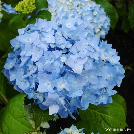 Гортензия Никко Блю крупнолистная (макрофила) - округлые соцветия до 10-15 см. Цветки голубые на сильно кислых почвах и розовые - на нейтральных и щелочных. Цветёт в июле-августе на прошлогодних побегах. Куст высотой и шириной 100-125 см. Место предпочитает полутенистое. Почву любит дренированную и  влажную. Требует укрытия на зиму, как для роз, чтобы сохранить цветковые почки. Укрывать нужно до наступления заморозков, в сентябре. Зона 6 (до -18ºС).