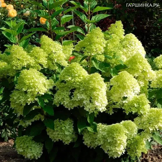 Гортензия Панателла метельчатая - имеет компактный куст, который достигает высоты от 80 до 100 см. Побеги крепкие и сильные. Листья продолговатые, ярко-зеленые. Размер соцветия очень крупный – до 30 см в длину. Цветение начинается рано – уже в июне. Интенсивность цветения обильная, а продолжительность длительная – до октября. Цветки этого сорта имеют лаймо-лимонную окраску и зеленую основную окраску. Аромат цветков сладкий и ванильный. Предпочитает равномерно освещенные участки, защищенные от ветра и переносит легкую полутень. Относится к зоне морозостойкости USDA 4 (от -34° до -29°).