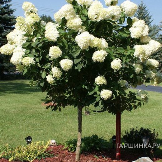 Использование Гортензия Сильвер Доллар на штамбе 55см в дизайне сада. Штамбовая форма метельчатой гортензии используются ландшафтными дизайнерами для создания «японских садов» и смешанных миксбордеров практически любого стиля. Эти растения хорошо смотрятся как в солитерах, так и в группах на газонах, у беседки, веранды или крыльца. Если у вас длинный забор, то посадите вдоль него гортензию метельчатую вместе с лианами (черешковыми гортензиями, девичьим виноградом, княжиками, вьющейся жимолостью). Гортензию метельчатую в штамбовой форме можно выращивать и в кадках на балконе.