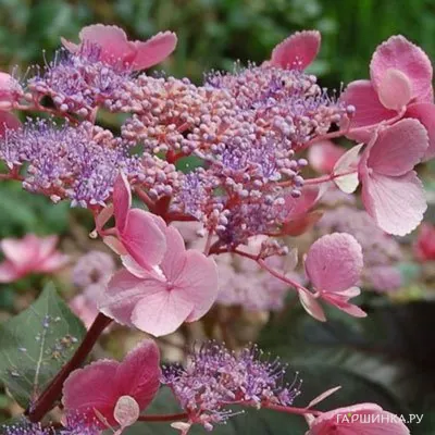 Гортензия Хот Шоколад (Горячий шоколад) шершавая - Является новым и эксклюзивным сортом в мире гортензий. Отличительной особенностью этого сорта является войлочно-шершавая листва (листья крупные, длиной до 30 см, шириной до 20 см), которая на протяжении всего сезона меняется: молодые листья имеют светло-оливковый окрас с заметными серебристыми тонами, с возрастом листья приобретают коричневые, шоколадные тона. Необычность окраске придаёт еще и тот факт, что обратная сторона листьев имеет тёмно-красный, винный цвет. Очень необычное и привлекательное сочетание оттенков. Ещё одной интересной особенностью этого сорта является окраска стеблей, листовых черешков и листовых прожилок – они имеют переходы цвета от глубокого оранжевого цвета до ярко-красного. Цветки крупные, плоские, кружевные, состоят из фертильных фиолетовых круглых цветочков в центре и плоских крупных стерильных цветков по краям, насыщенно розового цвета. Цветение начинается в июле и растягивается почти на 2 месяца. В средней полосе обязательно укрытие на зиму.