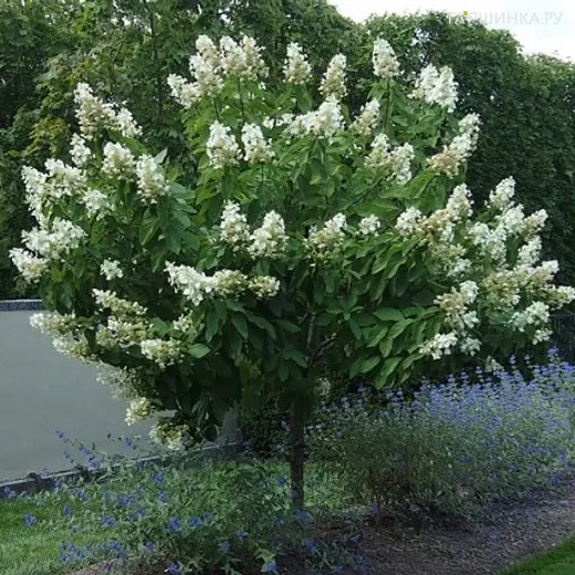 Гортензия на штамбе Кэндлайт (Свет горящей свечи) 55см (корнесобственный саженец на штамбе) - штамб 55 см. Цветение обильное, продолжительное. окраска цветка кремово-белая, затем внизу соцветия розовая. Форма цветка чашеообразная, лепестки стерильных цветков удлиненные, вершина с выемкой. Соцветия плотные, заостренные, конические. Лист зеленый, мелкозубчатый. Побеги темно-бордовые, крепкие, к верхней части фиолетовые. Зона зимостойкости 4.