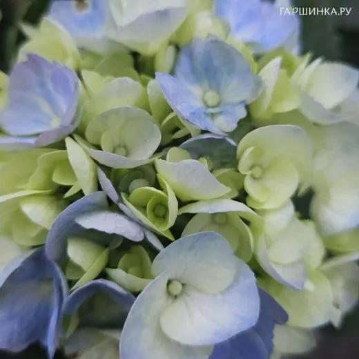 Цветки собраны в плотные синие соцветия диаметром до 20см. Цветет с июня до поздней осени. Ремонтантный сорт. Цветение на побегах текущего и прошлого года.Устойчив к жаре и солнцу.