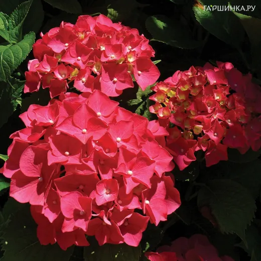 Гортензия Ред крупнолистная ремонтантная (серия Навсегда и Вечно) - лиственный кустарник. Крупные шапки насыщенно-красных цветков с жесткими зубчатыми лепестками. Цветет как на прошлогодних побегах, так и на побегах текущего года.